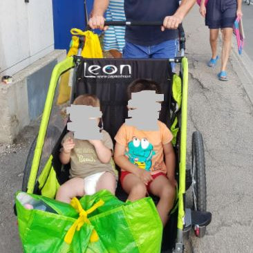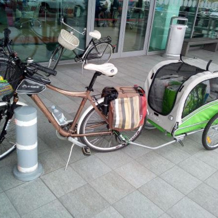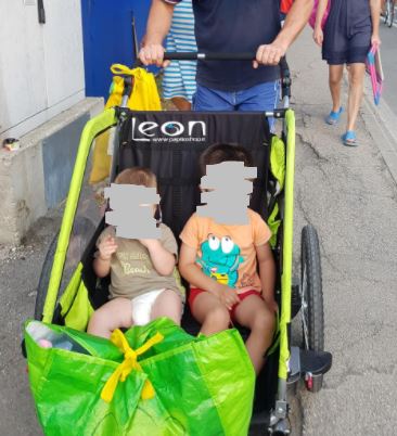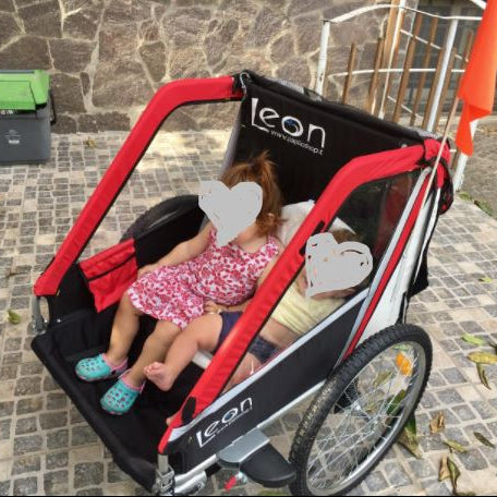 Questo tipo di rimorchio l'abbiamo visto e usato per la prima volta in Germania e ci siamo innamorati. Il rimorchio della bicicletta è molto semplice da attaccare alla bicicletta. L'abbiamo usato al mare come passeggino e abbiamo caricato i nostri due figli e anche la loro cuginetta, è stato divertente e comodo, perché abbiamo caricato tutta la roba per il mare. L'ho consigliamo.