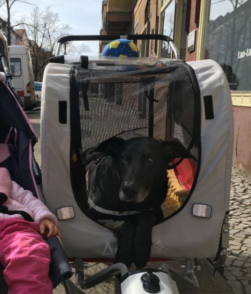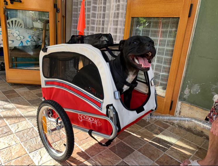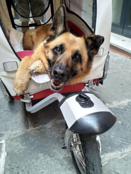 E spettacolare, la cagnolina si lo sta godendo un sacco!!! Ha 13 anni e problemi con le articolazioni.. prima potevamo andare non più di 500 metri.. invece adesso abbiamo già cambiato un sacco di posti e lei si sta divertendo come quando era piccola!!!!