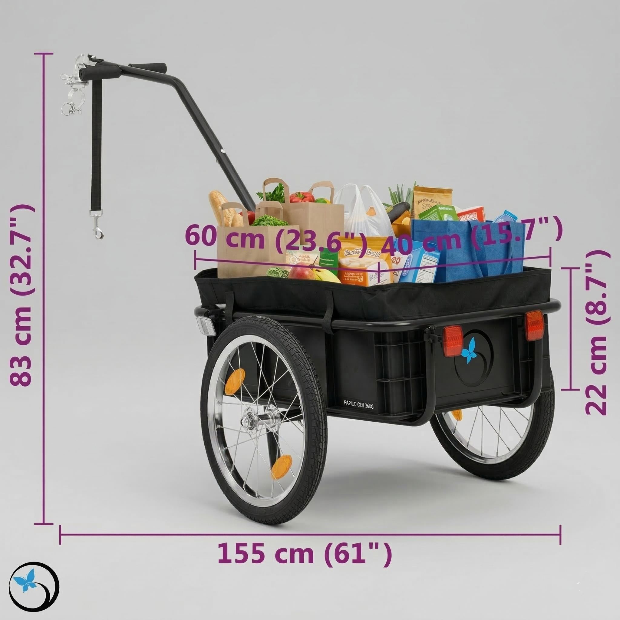 Geniale nella sua semplicità e versatilità; con il carrello spesa per la bicicletta arrivi pedalando al tuo negozio o al mercato, dopo averlo scollegato dalla bicicletta lo puoi trainare a piedi come un normale carrello della spesa dotato di borsa che svuoterai poi comodamente a casa.
