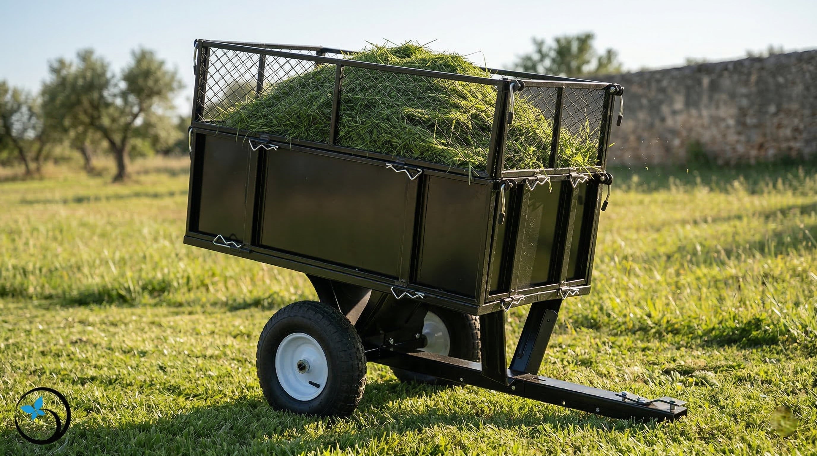 L’intero telaio è realizzato in acciaio, alluminio e plastica con ruote alte 12 pollici (= 30 cm circa) munite di camera d’aria, silenziose e scorrevoli, perfette per l’uso continuativo e ammortizzato su strada. Avendo i raggi, sono alleggerite in peso e sono dotate di sgancio rapido per essere tolte velocemente dalla struttura e ridurre l’ingombro complessivo del rimorchio.