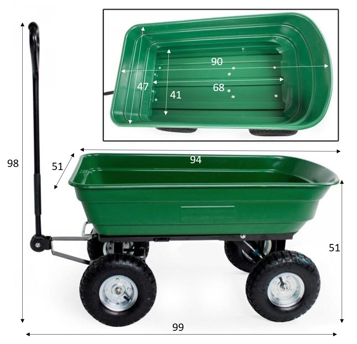 Con il suo telaio in acciaio il carrello manuale da giardino FELIX può trasportare fino a 250 kg di peso. La vasca di raccolta è ribaltabile ed è costruita in resistente materiale plastico rigido ABS; questo ti permetterà di scaricare molto velocemente e senza sforzi anche il contenuto più pesante.